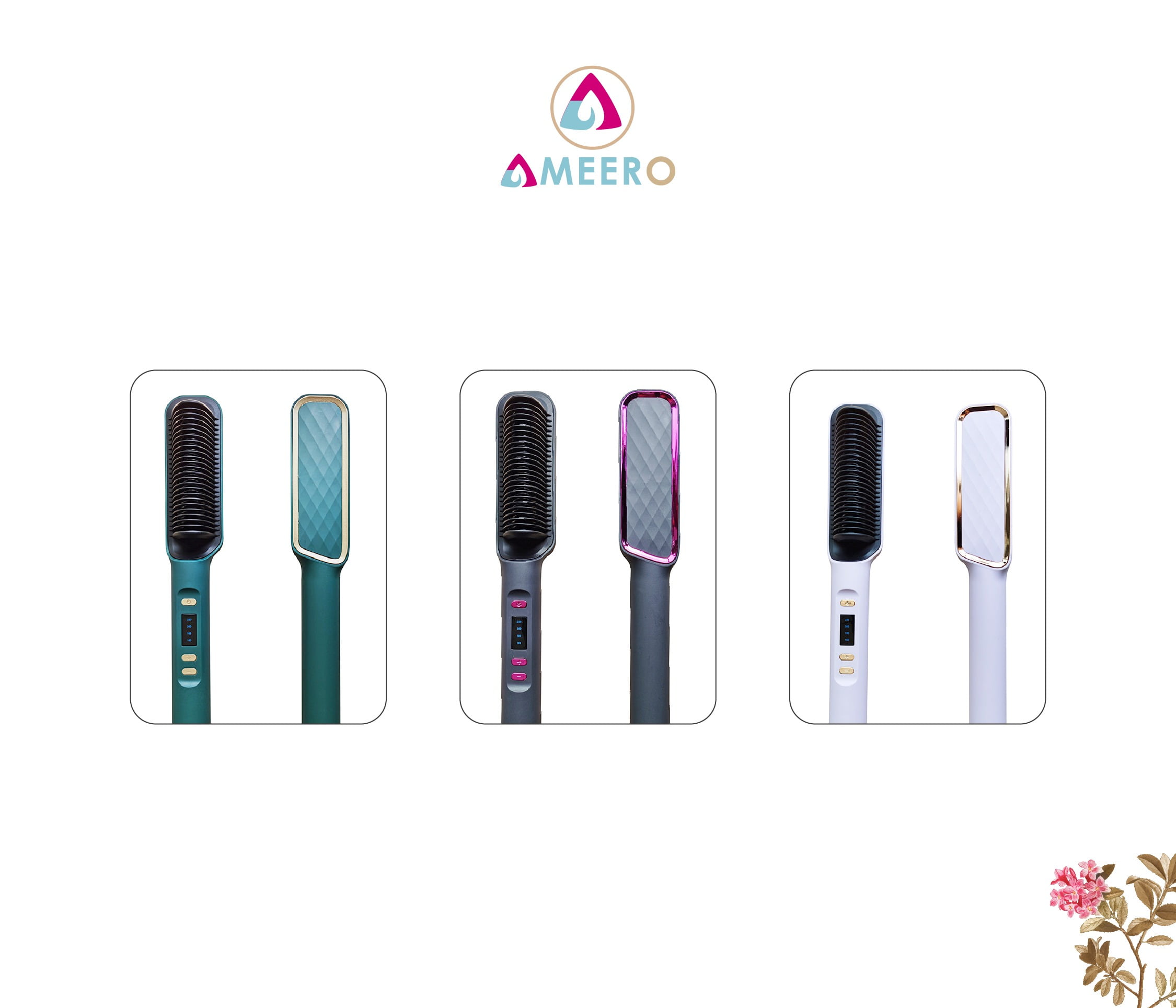 Running late? No problem. The Ameero Hair Straightener Brush gives you glossy, sleek hair in minutes. 3D densified teeth and ionic power deliver the perfect style with minimal effort.